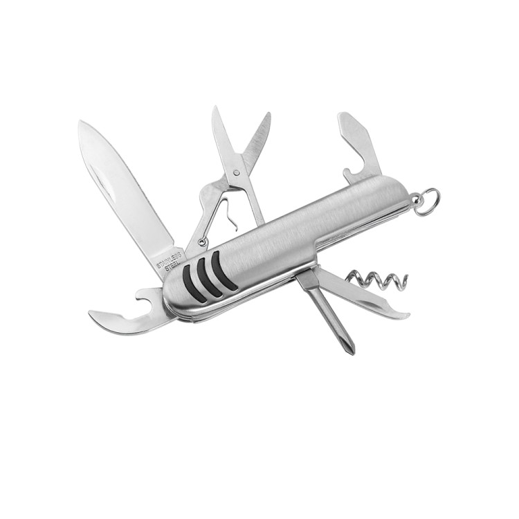 Компактный, удобный, универсальный. Активно пользуется спросом у рыбаков, туристов и автолюбителей. С его помощью непростая ситуация разрешится в два счета. Комплектуется: Штопор, Нож, Пилочка, Крестовая отвертка, Ножницы, Кольцо для ключей, 2 открывашки.